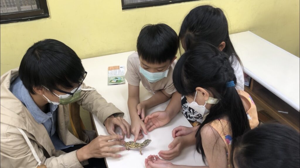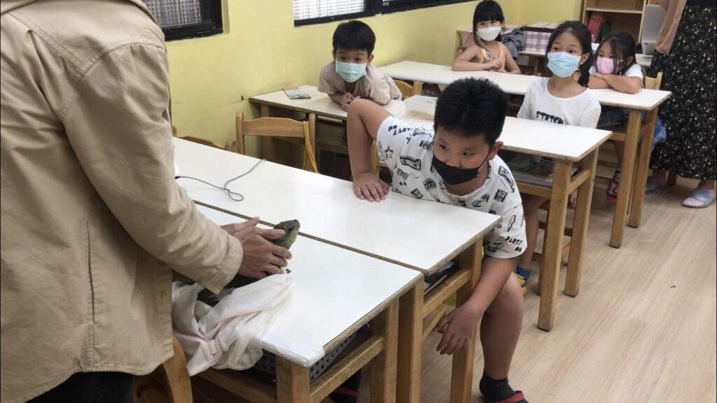 除了讓同學更認識爬蟲類動物外,也希望能讓各位更了解這些爬蟲動物的來源,並認清照顧動物不是一件簡單的事情。而當天當老師將陸龜帶給小朋友看的時後,也發生了有趣的小插曲: