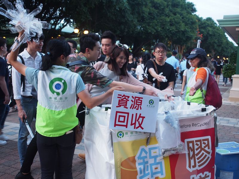 回到亞洲,台灣的太空港音樂藝術嘉年華,以「新能源」、「零浪費」、「永續」三大環保概念為訴求,三天活動全部都使用再生能源供電、不提供即棄餐具,還與專利技術結合,用膠樽生產再生塑膠製衣,包括活動制服、周邊商品等。鄭秀文2019年的演唱會亦不派發吹氣棒和用手機App「inEVENT」取代熒光棒。