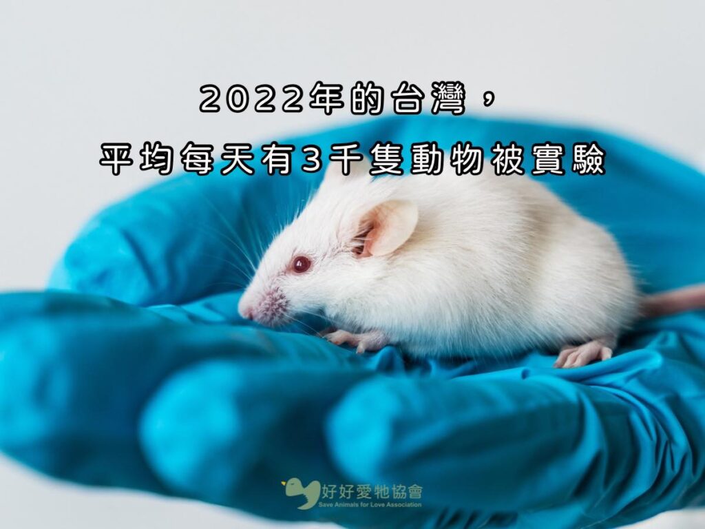 在台灣,根據最新的《實驗動物人道管理年報》,2022年全國用來實驗的動物案件共7,920件,被拿來做實驗的動物有115萬8,714隻(不含胚胎),存活率為29.46%,即341,370隻;也就是說,沒有挺過實驗,或者實驗後仍被賜死的動物,有817,344隻,若換算成每日平均數,等於每一天有3,174隻動物接受實驗,只有934隻活了下來。