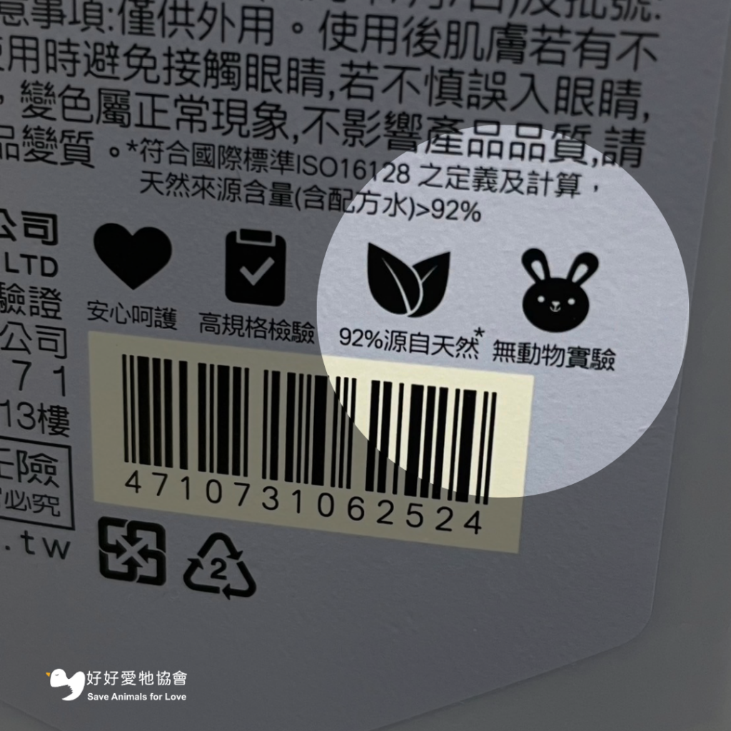 -NO ANIMAL TESTING(意思是不做動物實驗)