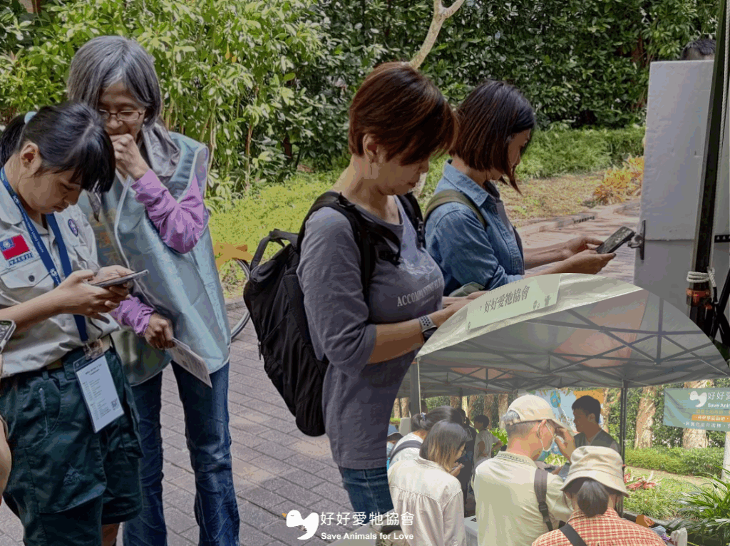 有幾位台大動物權利發展社的同學,帶著對動物的熱情與我們交流、盡一己之力小額line捐款,連續兩日都來,第二天還幫我們一起收攤,十分感謝。其實,協會裡有位夥伴十年前還是台大的學生時,也被這個社團影響,進而開始關心動物議題,現在社團同學看的紀錄片已經不是當年的那部「地球上的生靈」,而是2018的「Dominion」。