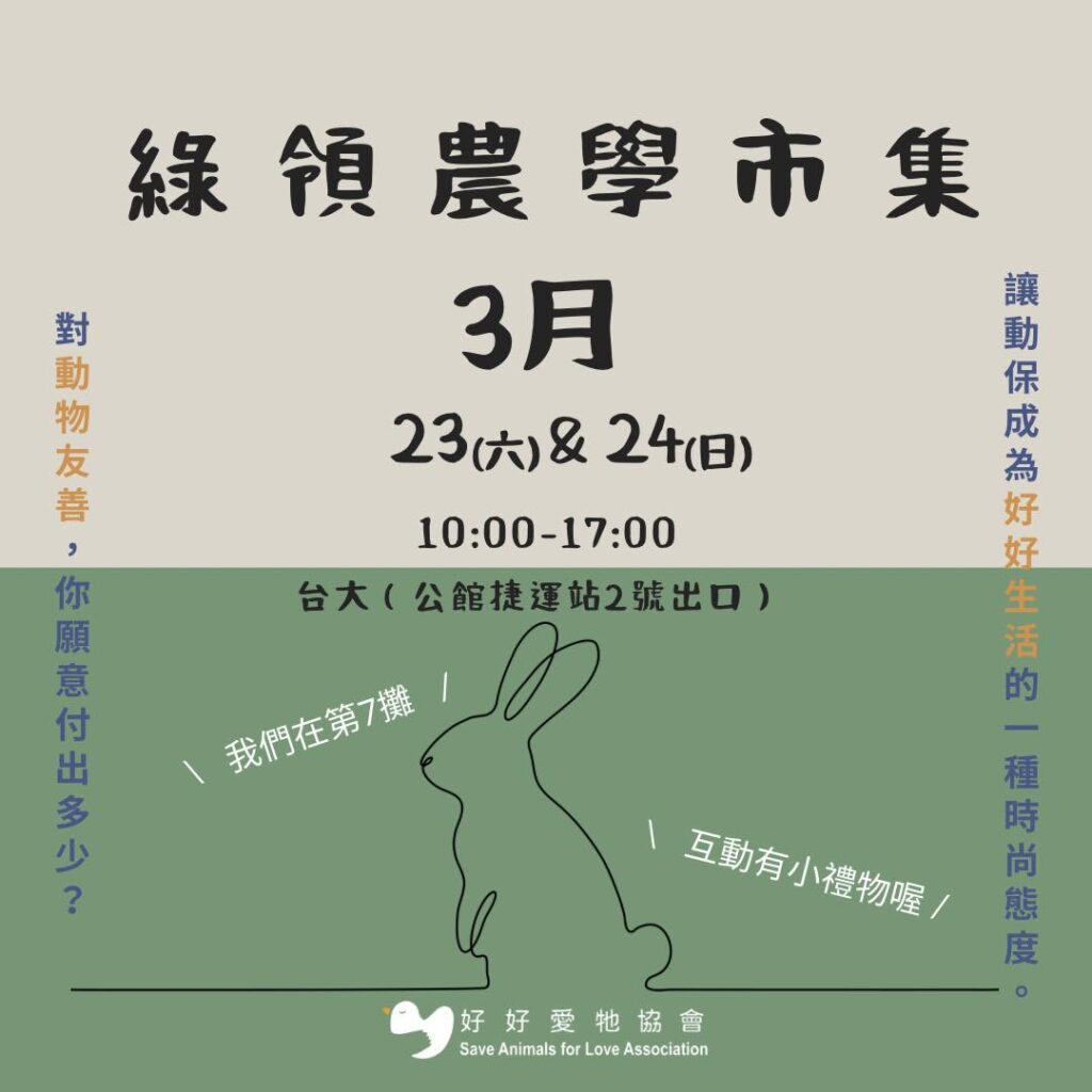 3月下旬的周末我們參與在台大公館舟山路的台大綠領農學市集擺攤,兩天的活動下來,有將近250位大小朋友參與動物友善測驗,了解實驗動物與經濟動物的處境,也學習到應該如何從日常生活幫助這些弱勢的動物們。