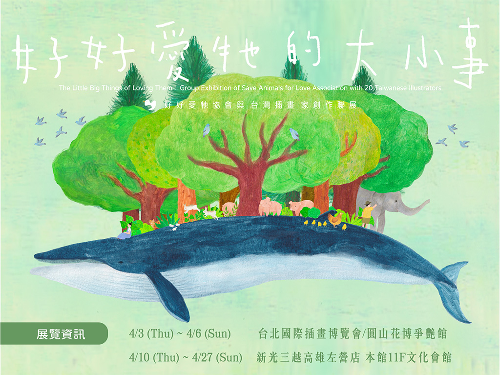 繼松菸文創園區的感動迴響,由「好好愛牠協會」與20位台灣插畫家聯手打造的《好好愛牠的大小事》插畫展後,感謝各界邀請,促成我們4月可以分別在台北與高雄兩地展出。4月初,我們將在台北國際插畫博覽會主題展區,緊接著把這份溫暖延續至高雄,於新光三越左營店本館11F文化會館,讓更多朋友認識多元議題的動物友善插畫,現場捐款,還能將限量的插畫明信片帶回家喔!