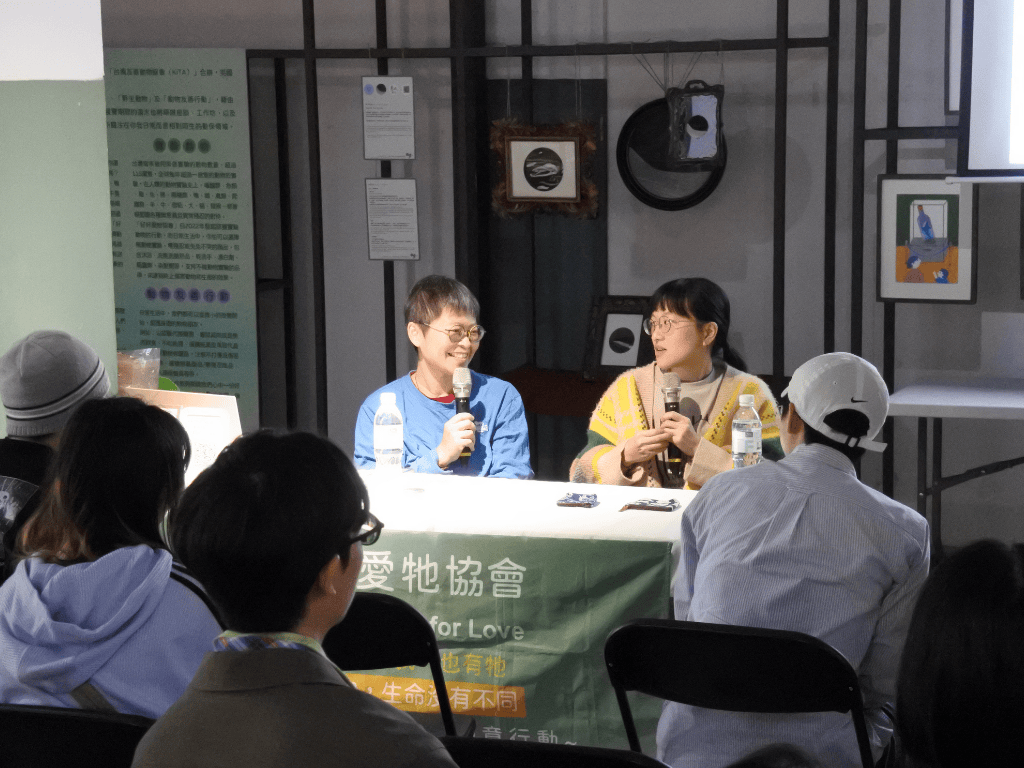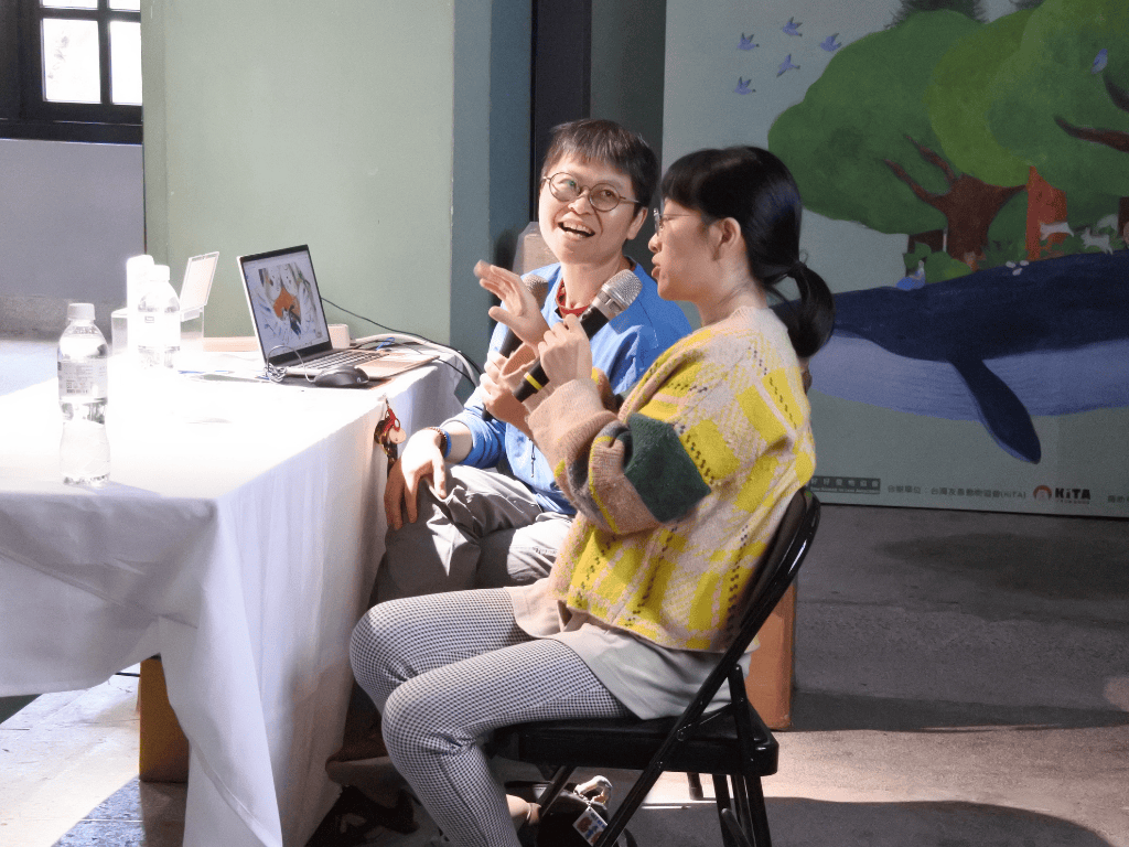 總結本次講座,兩位講者分享了他們在動物保護、插畫繪本合作及相關議題上的經驗與觀點,內容涵蓋實驗動物、寵物飼養、流浪動物、動物福利教育,甚至觸及了鯨豚保育的議題。講者們也討論了動保理念在不同年齡層的推廣方式,以及個人在面對動保議題時的掙扎與成長,並呼籲參加者嘗試蔬食、領養不棄養、支持不做動物實驗的產品,都為聽眾帶來深刻的啟發。