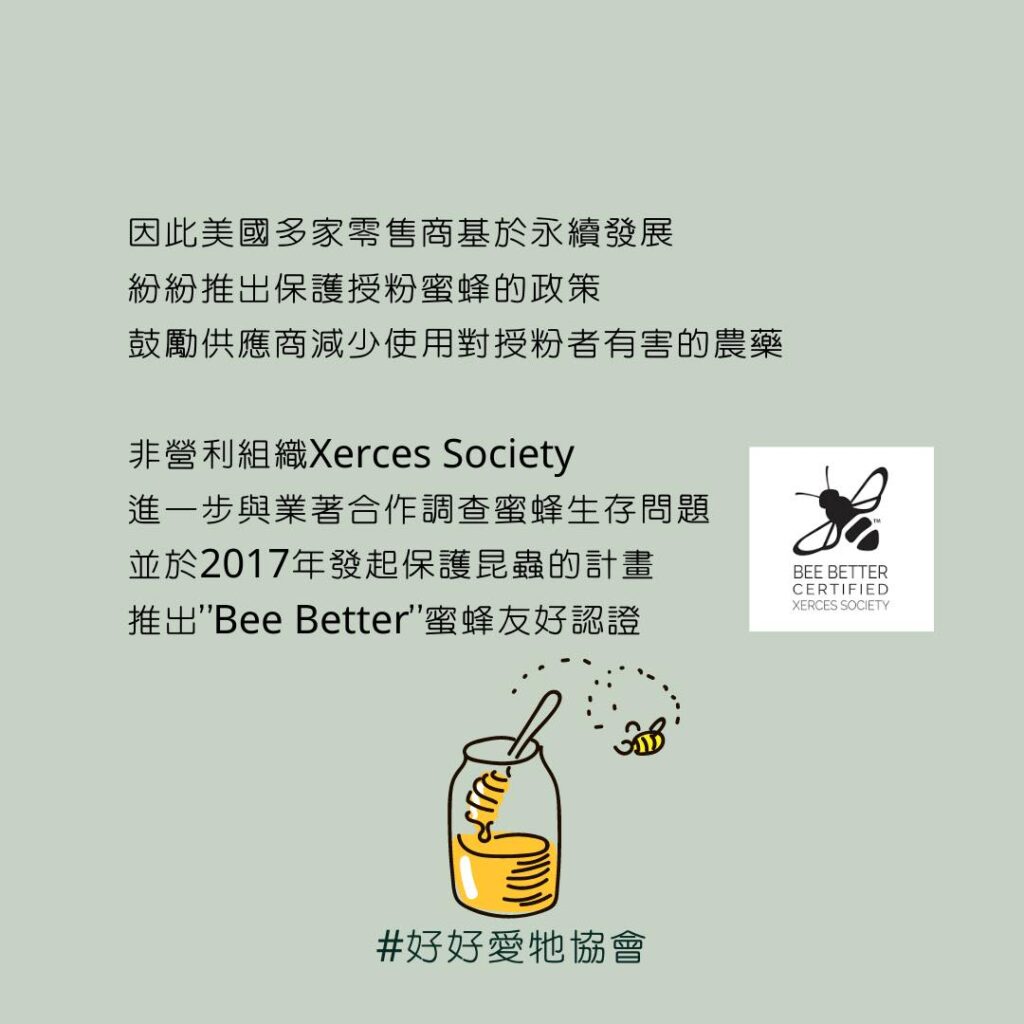 因此,美國多家零售商基於永續發展,紛紛推出保護授粉蜜蜂的政策,鼓勵供應商減少使用對授粉者有害的農藥。