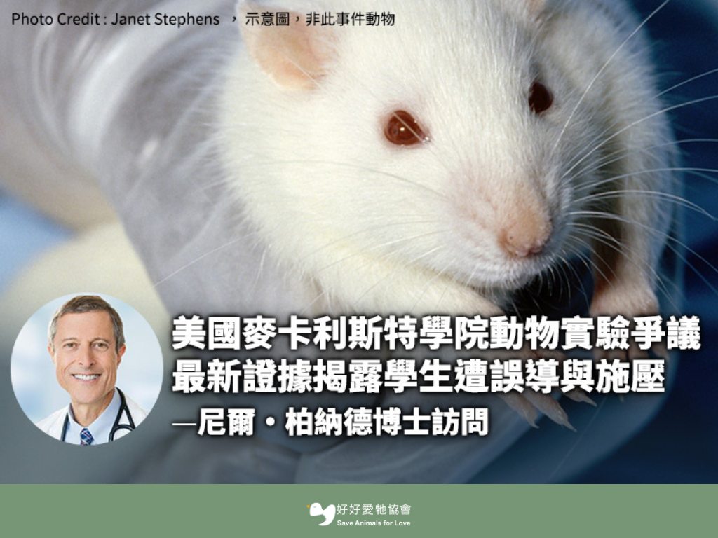 在美國明尼蘇達州聖保羅 — 在 2025 年 10 月 10 日於亨內平郡法院提交的文件中,尼爾・柏納德博士( Dr. Neal Barnard)提出了最新證據,指出麥卡利斯特學院( Macalester College)心理學系正在使用誤導性陳述,並對學生施加壓力,迫使他們參與不必要的動物實驗,這種做法可能會損害學生的教育,並造成長期的心理影響。這些新證據呈現在柏納德博士控告麥卡利斯特學院的案件中,該案最初於六月提起,指控該學院在動物使用方面欺騙捐款人。訴訟指出,學院為了教導學習的基礎概念而殺害了數千隻動物,儘管已有無害的替代方法,學院還聲稱遵循最高的倫理標準。訴訟文件中引用了麥卡利斯特學院最近的聲明,2025年9月25日發表在校報《The Mac Weekly》。根據心理學系的說法,入門心理學課程「並未涉及透過實驗殺害動物」,而且「在心理學入門課程中不會殺死任何囓齒類動物」,表面上暗示這些動物會存活。但未被提及的事實是,這些動物可能在學生看不到的情況下,被實驗室人員殺害。對於那些試圖選擇不參與動物實驗的學生,心理系也發表了令人不安的言論,聲稱這樣做會錯過一段「無可取代的經驗,這將影響他們未來的學習……我們認為這是未來科學家與知情公民的必要準備」。這些說法很可能對學生造成壓力,迫使他們參與許多人認為在倫理上無法接受的活動。在2025年8月5日,明尼蘇達州公共教育廣播電台協會的節目中,一位麥卡利斯特學院心理學系的學生分享了她和朋友對動物實驗室的情緒反應。由於該學院的行為,她「要求保持匿名,並擔心自己可能會在系上惹出麻煩」。一項近期調查顯示,全美有83%的大學生反對在已有替代方案且動物將被殺害的情況下使用動物。許多受訪學生表示,他們還是會參與動物實驗「以避免麻煩」(20%),另外有24%的學生表示他們在要求替代方案時會感到緊張。包括哈佛大學、耶魯大學、史丹佛大學、普林斯頓大學、杜克大學、密西根大學、賓州大學和其他頂尖大學,早在多年前就已停止在心理學教學中使用動物。而本地的學院,包括卡爾頓學院、聖奧拉夫學院、聖約翰大學、哈姆林大學及明尼蘇達大學,也已採取同樣的轉變,這直接反駁了麥卡利斯特學院「動物實驗室不可替代」的說法。「麥卡利斯特學院的課程已過時,且可能對學生造成傷害。」柏納德博士表示:「學生不需要進行動物實驗,不需要被施壓,也不需要被誤導。有更好的教學方法,學院應該採用。」柏納德博士在1975年以優等成績從麥卡利斯特學院畢業,主修心理學。當他得知學院在50年後仍在進行過時的動物實驗,就在2024年向學院提供其他地方採用的現代教學方法詳情。他以為學院確實在研究方法更新教學,並為此募款支持學校。然而,麥卡利斯特學院校長Suzanne Rivera突然終止了課程討論,並將柏納德博士轉介給學院的訴訟律師們。強迫學生參與不道德行為的問題,可從米爾格倫教授(Stanley Milgram)在耶魯大學的實驗中明顯看到。當時他指示學生對研究受試者進行他們以為的電擊,大多數人都照做了,儘管他們相信電擊是痛苦的甚至會危及生命。因此造成的壓力讓一些參與者直接向米爾格倫教授或大學投訴。 就像米爾格倫的實驗一樣,麥卡利斯特學院的教職員在動物使用的必要性上存在誤導,並透過語言引導學生參與。然而,與米爾格倫的實驗不同的是,在麥卡利斯特學院對動物的傷害是真實的,包括實驗前的剝奪與長期禁閉,以及實驗後的死亡。此外,實驗過程中產生的負面情緒會干擾到學習,許多學生在參與這些不必要的動物實驗後,長期承受壓力與懊悔。柏納德博士表示:「醫學院多年前就已將動物實驗從課程中移除,研究界也正跟進。麥卡利斯特學院也應該這麼做。」他同時也指出,該學院對動物實驗室的誤導性描述,違背了美國心理學會(American Psychological Association)的政策,該政策聲明:「負責教育與訓練課程的心理學家,應採取合理措施,確保課程內容(包括參與必要的課程或計畫相關的諮商、心理治療、體驗團體、顧問計畫或社區服務)、訓練目標與宗旨、津貼與福利,以及完成課程所需的各項要求,都有最新且準確的說明。這些資訊必須讓所有相關人士都容易取得。」聽聽柏納德博士怎麼說台灣動物平權促進會與好好愛牠協會除了取得本篇文章的中文授權刊登,也透過書面訪問尼爾・柏納德博士,他曾就讀麥卡利斯特學院,是現任喬治華盛頓大學醫學院副教授、美國責任醫學醫師委員會(PCRM)主席。柏納德博士說明當初控告母校的始末,並呼籲教育體系應該淘汰動物實驗。Q1 您為何決定對母校提起訴訟?這起事件的轉捩點是什麼?回答:在明尼蘇達州的麥卡利斯特學院(Macalester College),我向校長指出一個事實:儘管該校聲稱「在任何動物使用上都會以倫理原則為最高標準」,但實際上卻仍在心理學課程中使用活體動物。照理說,這樣的倫理原則應代表只要有可能就應採用非動物的替代方案。然而,這些動物卻被用來教導一些心理學的基本原理,通常不需動物就能進行教學。校長瑞維拉博士(Dr. Rivera)曾與我會面,令人鼓舞的是,她邀請了副教務長保羅·歐弗沃德(Paul Overvoorde)一同參與,並請我後續與他聯繫。我照做了,並分享了可行替代方案的詳細資訊,以為這些方案很快就會被採用。然而令我驚訝的是,瑞維拉博士突然中斷了溝通,並將我轉介給學院的訴訟律師。關於倫