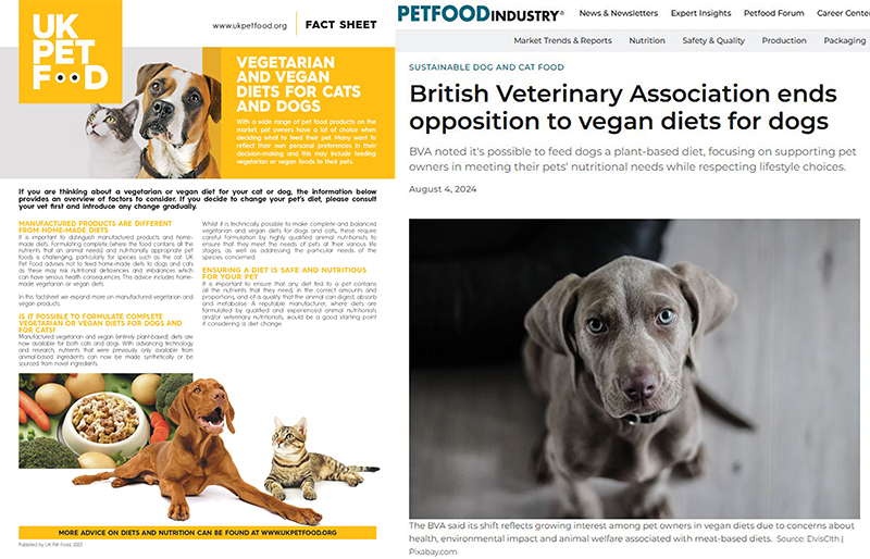 奈特教授說明在寵物吃素這件事上,幾個重要的考量(健康、營養、品質、適口性、環境永續)都已得到科學證明,但大多數飼主並不知道這些資訊,因為這些研究是最近十年才發表的。奈特教授希望讓更多人了解這件事,常在英國的獸醫刊物介紹純素寵物食品,如今英國寵物食品協會也推薦素食寵物食品,英國獸醫協會則是全世界第一個公開支持狗吃素的協會。
